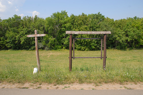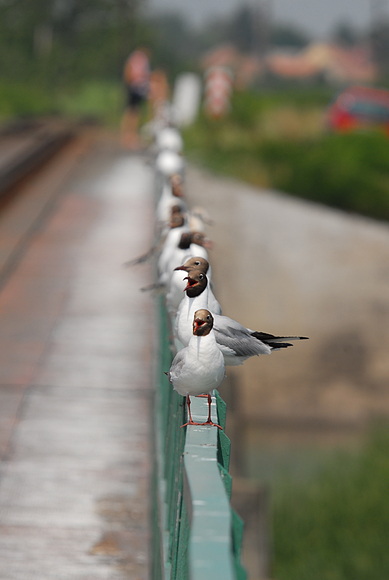 10:21-kor ültünk fel a bringákra Tiszafüreden. Nyugat felé indultunk, a 33-as főúton áttekertünk Poroszlóra. A helység előtt közvetlenül egy hídon kell átmenni. A közúti híd mellett fut a vasúti híd, annak korlátján egy csomó sirály tátott szájjal bámulta, ahogy elsuhanunk mellettük. Na jó, nem is, egyszerűen csak piszok melegük volt...