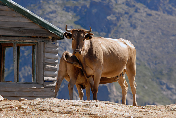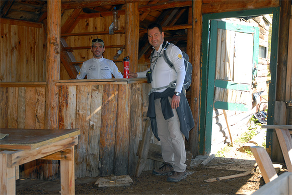 A régi, most már igencsak szétesőben lévő menedékházig út vezet, igaz csak terepjáróval lehet felmenni. A faházba bejárnak a tehenek, ablaka egy se, de van benne pár asztal és szék, és egy bárpult is.