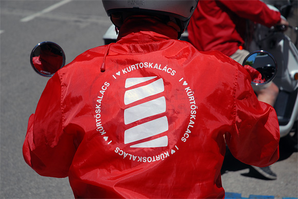 Calviból való indulásunkkor a csomagtartó dobozokra felragasztottunk egy-egy I love kürtőskalács matricát és Sztoji és Imi széldzsekije hátára is ez a logó van felhímezve. Amikor Sartène-ből kifelé tartottunk és megálltunk a már említett fotót elkészíteni, egy kis Peugeot-ból tört magyarsággal kiszólt egy srác, hogy ő is szereti a kürtőskalácsot. Arra már korábban is felfigyeltünk, hogy sokan megnézik a csapatunkat, ahogy átmegyünk egy településen, vagy leparkolunk valahol, Talán a négy egyforma fehér robogó, rajta négy hasonlóan piros széldzsekis motoros vonzza a tekintetet.