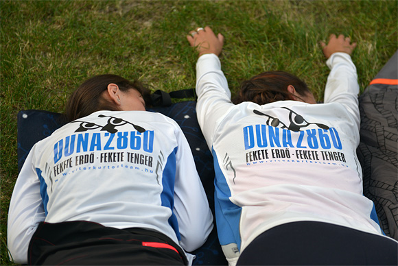 Antal kijött értünk a partra. Innen elég sokat, több mint 8 kilométert kellett autózni a Zlaté Piesky tó partján található kempingbe. Ez nem is annyira nekünk, hanem a biciklis csapatnak jelentett nagyobb terhet, hiszen nekik nem csak ki kellett ide tekerni, hanem holnap vissza is kell menni a Duna-partra. Ők egyébként hét óra körül gurultak be a kempingben, páran meglehetősen fáradtan a megtett 80 kilométer után. Mi ekkorra már szundítottunk egyet, majd Gáspár és S. Gyula elmentek a közeli Tescóba kaját vásárolni. Amíg visszajöttek, beízzítottuk a Bake'n'Rollt, levest főztünk, majd odatettük sülni a kolbászokat, és penne is főtt. Megvacsoráztunk.