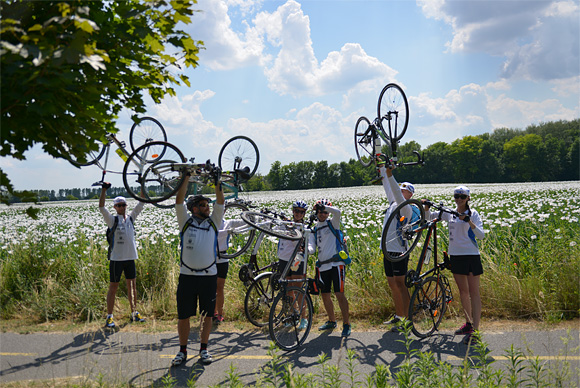A biciklis csapatnak ma kemény napja volt. Az ő távjukat vonattal lehetett volna emberibb keretek közé szorítani. Ez is volt a terv, azaz, hogy Komáromból a Szigetközben eljutnak Győrig, majd onnan vonattal Tatáig, ahonnan bebicikliznek a kempingig. Ezt végül csak Szidi és Emő tette meg, a többiek úgy döntöttek, hogy inkább tekernek. Ők majd' 150 kilométer megtétele után, majdnem sötétben érkeztek meg a kempingbe, ami elismerésre méltó teljesítmény.