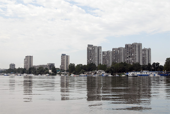 Kissé morcosan indultunk hát tovább a kavicsbányától. Nem sokkal később már Belgrád mellett eveztünk el. A szerb fővárosból nem láttunk sokat, nagy részét eltakarja a Száva torkolatánál lévő Veliko Ratno (Nagy Háború) sziget. Az első benyomás nem volt túl pozitív, a város felső részében 7-8 húszemeletes panel áll, szemre elég pocsék állapotban, lakatlannak is tűnve.