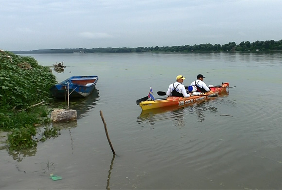 Alsópozsgáson ebéddel vártak minket fél kettőtől. Fél öt után indultunk át a Duna túlpartjára. Tudtuk, hogy be kell jelentkezni Ómoldován, de már nagyon éhesek voltunk, úgy hogy kikötöttünk ott, hogy majd evés után megyünk a vámhoz. Kikötöttünk a ház stégjénél, száraz ruhát vettünk magunkra, és mire előmentünk a házhoz, már ott volt a határőrség. Mondtuk nekik, hogy rögtön jövünk, csak meghűl a kaja. Megértőek voltak, nyilván részben annak is köszönhetően, hogy ismerték a házigazdánkat. Megebédeltünk, majd újra kajakba ültünk és leeveztünk a nyolc kilométerre lévő Ómoldovába. Ott is megkaptunk az ejnye-bejnyét, lelkünkre kötötték, hogy ilyent többet ne csináljunk, és többször is elmondták, hogy amúgy ennek az akciónak a díja fejeként 5000 lej, azaz mintegy 350000 Forint lenne.
