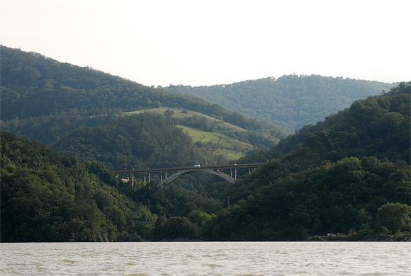 Érdekes volt megfigyelni a két part közötti különbséget. Míg a román oldalon az út a Duna-parton halad, néha kis falvakon keresztül. Itt alacsonyabb, kopárabb a táj. A szerb oldalon viszont meredek, erdővel borított part kíséri a Dunát. Itt is van út, azonban jóval magasabban, időnként alagútba futva, időnként viaduktokon áthaladva. Települések ritkábban tűnnek fel, egy-egy patak torkolata környéke volt alkalmas házak építésére.