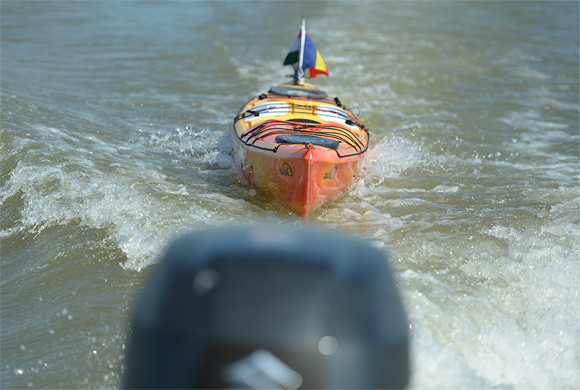 Tovább indultunk. Talán Crișan környékén jártunk, amikor meglepetésszerűen leállt a motor. A motorcsónakos próbált rájönni a probléma okára, illetve talán arra, hogy kerülhetett ebbe a helyzetbe, ugyanis a benzinóra elég egyértelműen üreset mutatott. A hátsó pad alatt lévő műanyag tankot mozgatva próbálta abbeli reményét táplálni, hogy az óra rossz, de ez nem jött össze. Kézi pumpával sikerült még némi benzint adagolni a motornak, ami beröffent, de nem jutottunk túl messzire. Amikor újra leállt a motor, a kajakban már megint lehetett valamennyi víz, a tehetetlensége kivitte oldalra, ahonnan a kötél visszarántotta. Ezúttal nem borult fel, csak belemerítette magát a vízbe. Megint mertünk.